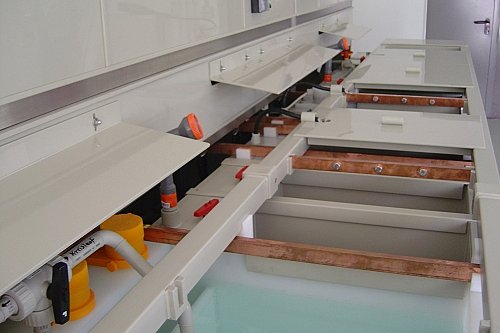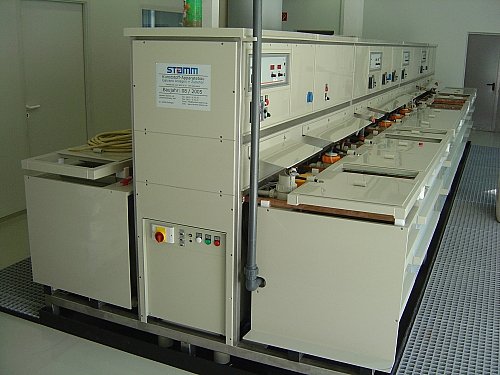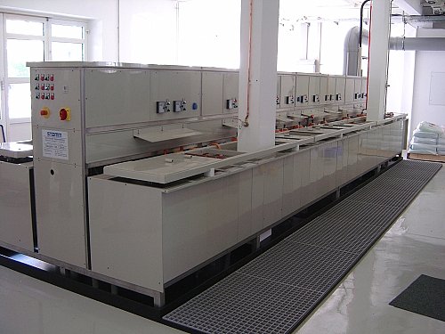 In einer Gesamtlänge von 17m sind 50 Badpositionen integriert, welche es dem Anlagenbetreiber ermöglichen, im eigenen Hause auch die Anforderungen an neue Kunststoff-Oberflächen für die Industrie umzusetzen. Die Anlage, welche in Modulbauweise hergestellt wurde, erfüllt sämtliche Anforderungen an die Verfahrenstechnische Kunststoff-Galvanisierung.