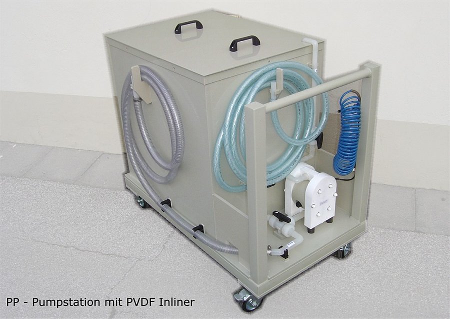 - PVDF Tankinliner sowie PVDF Leitungen und Ventile