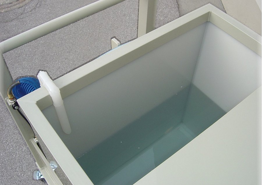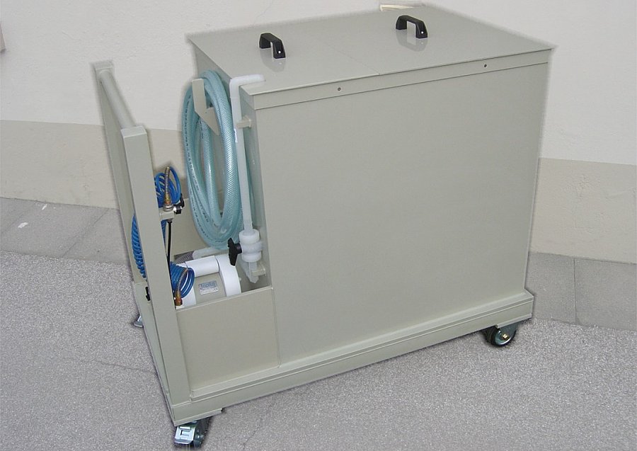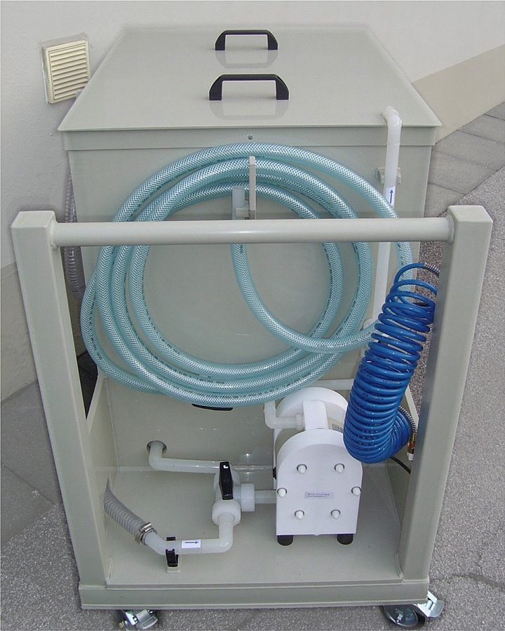 - einfaches Rückpumpen duch Ventilumstellung in den Badbehälter, oder Entsorgungstank (auch direkt vom Bad in den E.-Tank möglich)