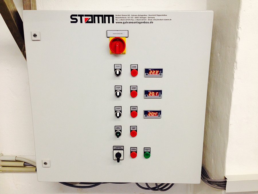 - Schaltschrank zur Steuerung: Ventilator, Heizung, Pumpen, Niveau