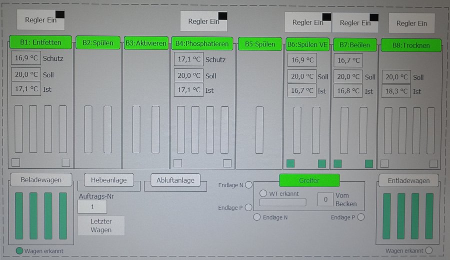 Nach Kundenwunsch modular aufgebaute vollautomatische Zinkphosphatieranlage.